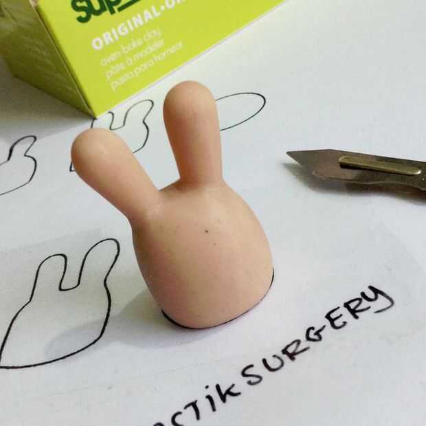 5. cuando termine, coloque el conejo terminado en el horno a baja temperatura y dejarla por unos 10 minutos. (puede volver a hornear Super Sculpey cerca de 3 veces.)