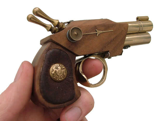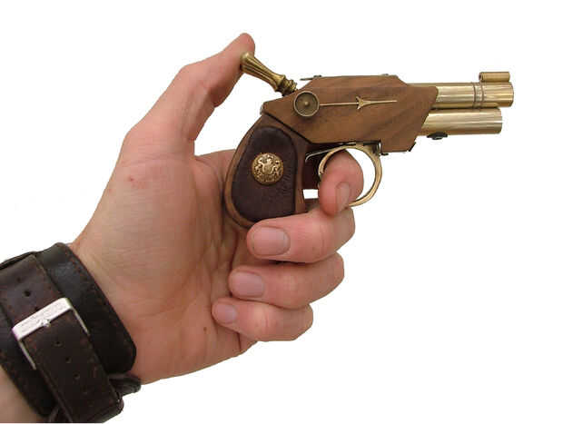 Hace varios años un conocido me dio una pistola de juguete de steampunk. Noté que hubo un disparador que se moviera y el cañón frontal girada pero no creo que mucho de él. Parecía que iba a hacer algo, pero no pagar que mucha atención y se sentaron e