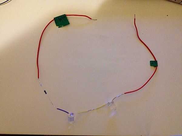 -Todos los cables de tierra juntos (LEDs, 2 servos y PIR sensor terrenos) y prueba de la soldadura