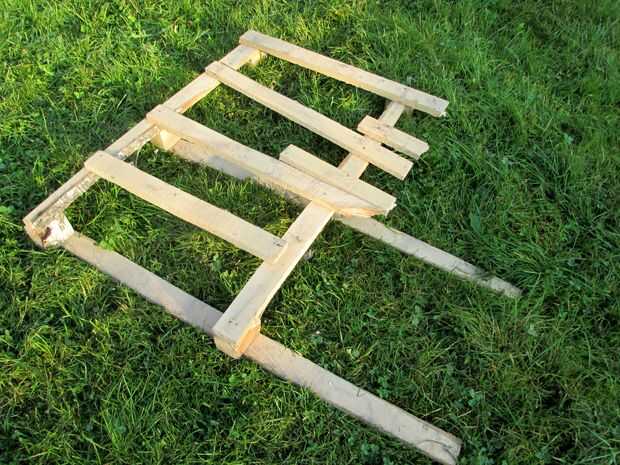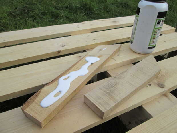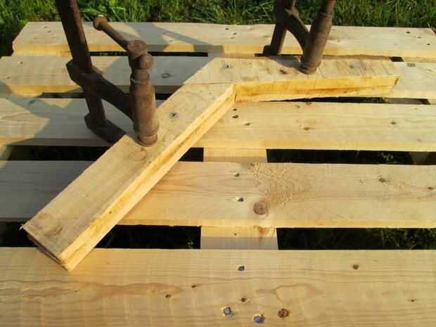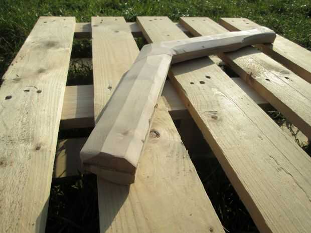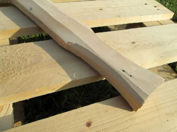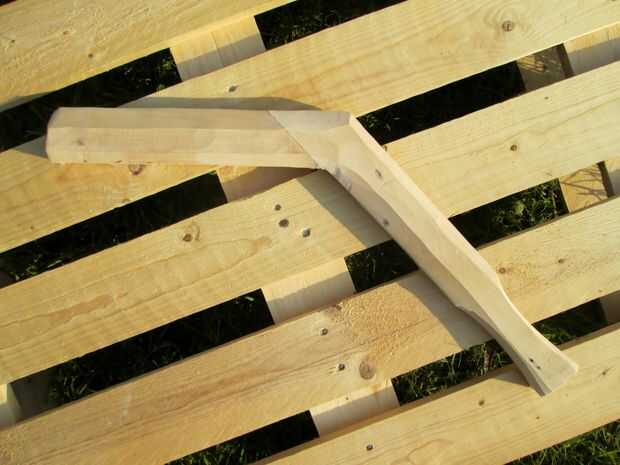 Tuve ninguna rama de madera curva sí mismo, me decidí a construir uno. Fuera de una plataforma de abedul de madera desechados había recuperado un par de tablas que yo cuidadosamente aserrada a 45 °. Las cuatro tiras fueron luego pegan en un ángulo de 135 ° y entonces perfilada con navaja, plano, papel de lija y un poco de paciencia. Aceite natural había terminado el trabajo.