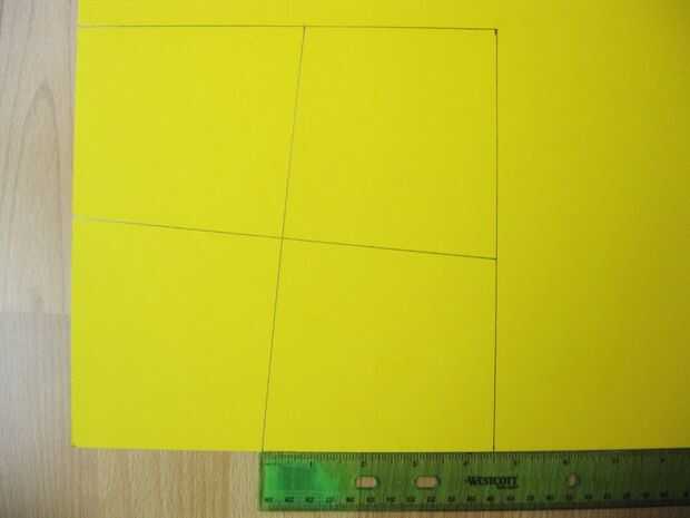 Utilice tijeras para cortar la Plaza. Crear cuatro piezas por corte a lo largo de las líneas restantes. Las siguientes imágenes muestran todas las dimensiones necesarias.