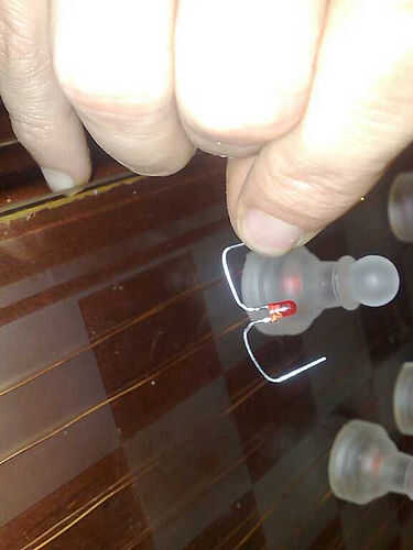 Ahora pone el Led en la parte inferior de la pieza de ajedrez. Quizás tenga que quitar los fondos de papel de las piezas si estaban siempre allí.