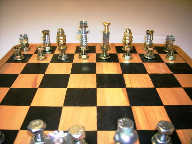 La mayoría de los sistemas de hardware que he visto utiliza pegamento o locktight, pintados a un ejército o había modificado piezas de hardware o un coche para hacer las piezas más artísticas. Casi todos ellos eran interesantes, pero mi visión era hacer un ajedrez set de piezas de hardware no totalmente modificado en Ace hardware o Lowes. No quiero pintura, pegamento o embellecer el hardware crudo, pero artísticamente simplemente utilizar lo que estaba disponible como stock hardware.