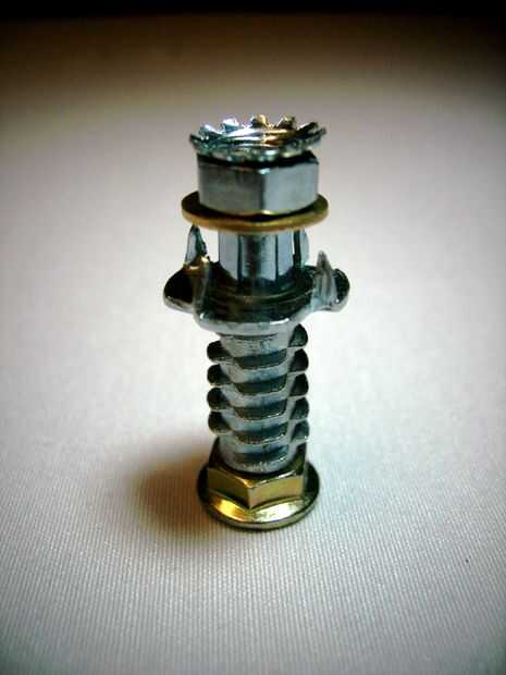 Una de mis partes favoritas de esta pieza es la corona en la parte superior de una tuerca de seguridad.  Hacer una corona de múltiples puntos perfecta que tiene el beneficio añadido de spinning y tintineo!  El T-nut también añade un aire de fatalidad digno de una reina que creo.