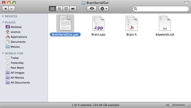 Por ahora, usaremos el programa 'BrainSerialOut'. Tan abierta la carpeta y haga doble clic en el