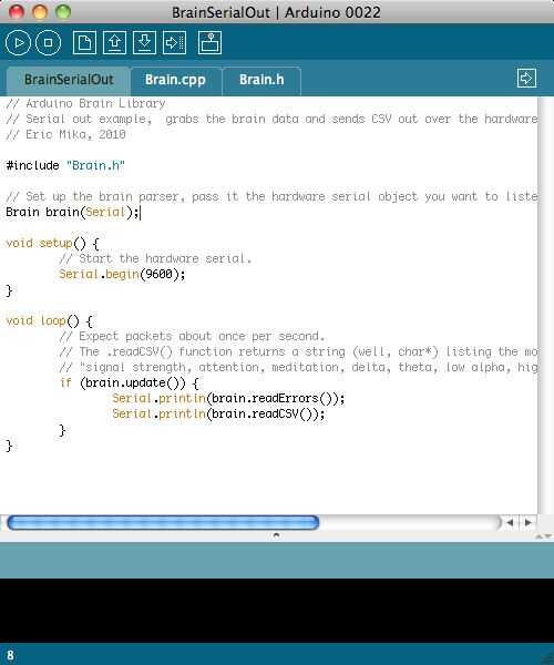 'BrainSerialOut.pde' archivo y súbelo a tu Arduino.