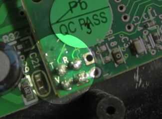 Habrá un pequeño pegote de soldadura debajo de la etiqueta 'T'. Soldar un cable a la globalización (ver fotos)!