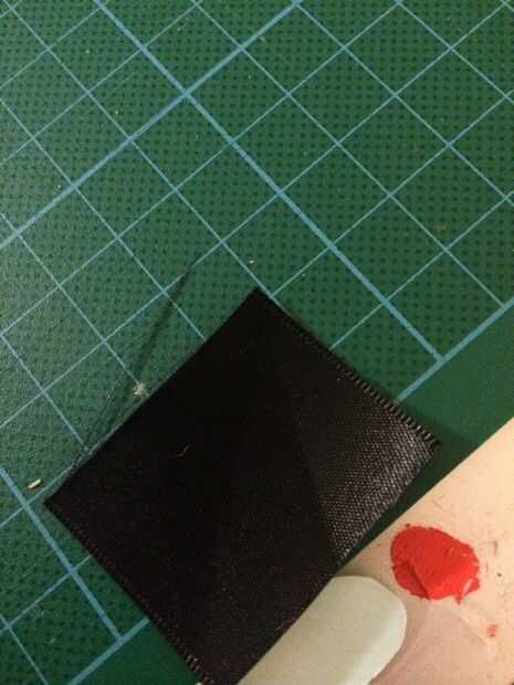 Coloque las mitades de dos corazón al lado del otro y cubrir un lado del pequeño pedazo de la cinta con pegamento.
