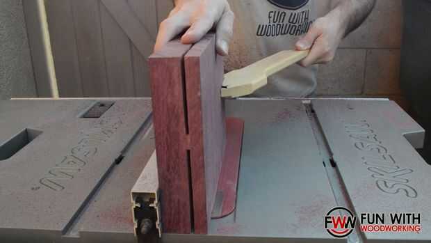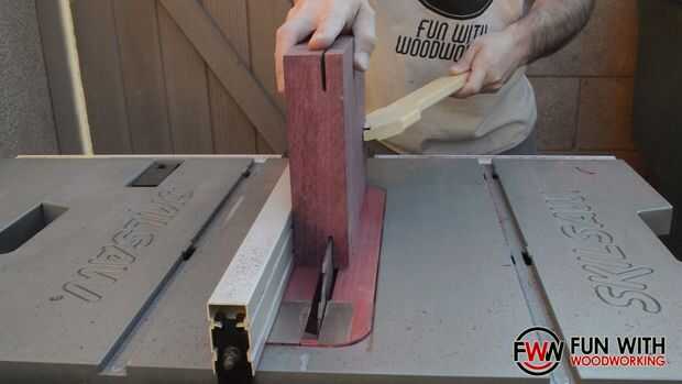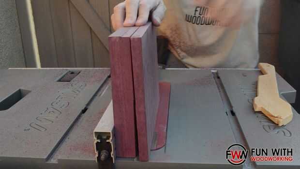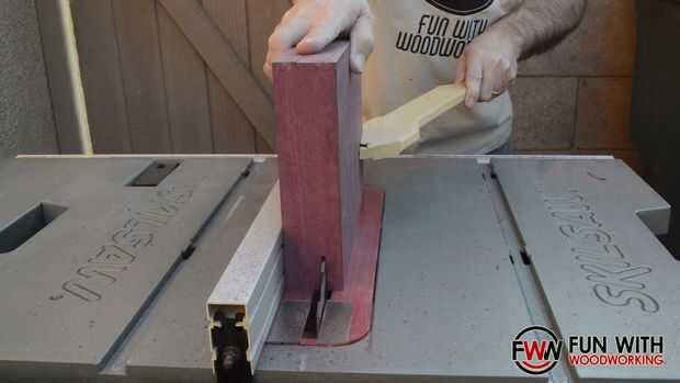 Mi sierra de mesa no es muy fuerte así que puse mi valla a 1 1/8" y funcionó un corte superficial en un lado y luego en el lado opuesto. Levantó la cuchilla hasta un poco a la vez, cortar cada lado, repite el proceso y eventualmente cortar toda la pieza.