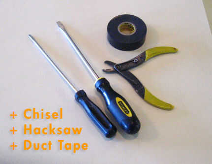 Herramientas que utilicé: cincel, Sierra, cinta aislante o tubería del encogimiento, alambre cortadores y peladores, destornillador de cabeza plana (preferiblemente sharp-ish y wide-ish), opcional: dos llaves de mono para curiosos.