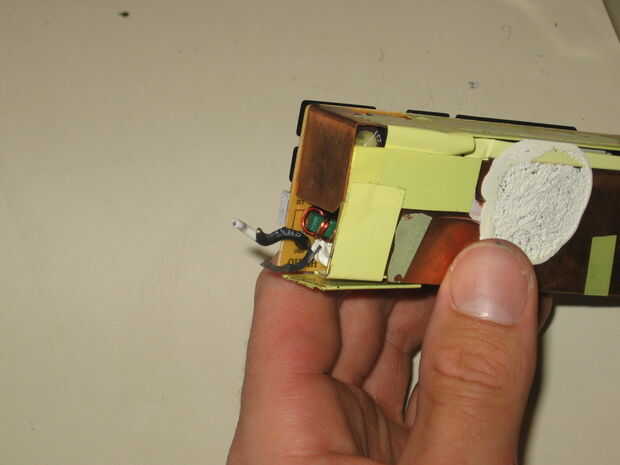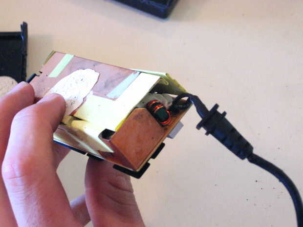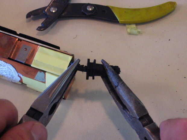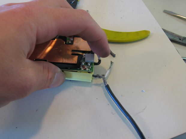 Soldadura habría sido más seguro, pero yo no tenía ninguno de ese equipo alrededor. El acceso a los puntos de soldaduras en el adaptador no es terriblemente difícil, pero puede requerir más desarmado, que no estaba interesado en hacerlo.