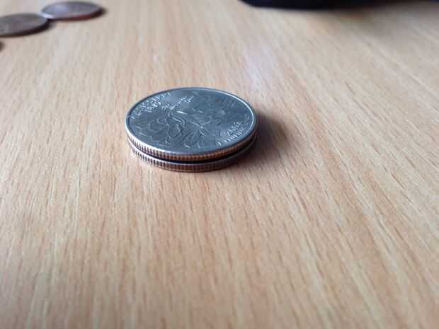 Unir dólares trimestre 2. Como se muestra en la fotografía. Hacer lo mismo con el otro cuarto 2 dólares
