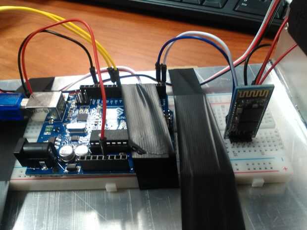 - Conectar el Bluetooth módulo RX al pin TX en el Arduino, a continuación, conectar el pin TX en el Bluetooth a la RX en el Arduino.