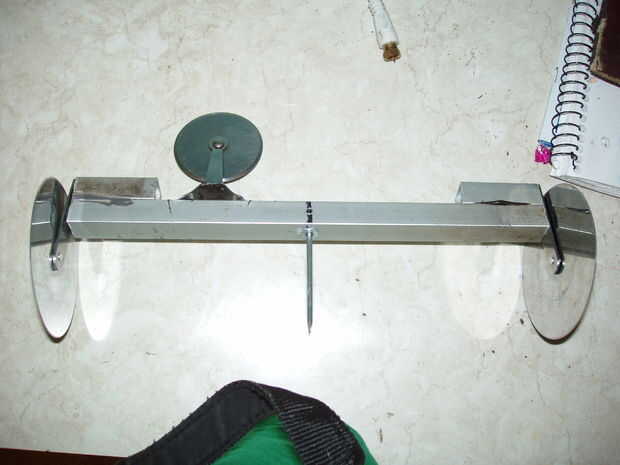 Aquí está mi opinión sobre un cortador de pizza, es una divertida manera de cortar la pizza y una gran conversación de arranque.Lo mejor de todo que es hecho totalmente a mano, de un pequeño sobrante y un plástico re-purposed maneja cortador de la pi