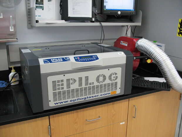 Madera de la impresión con un Epilog Mini/Helix cortador del Laser del Co2