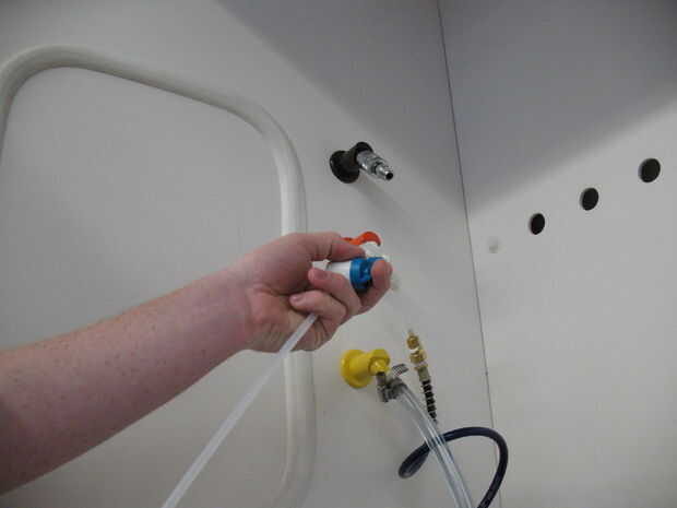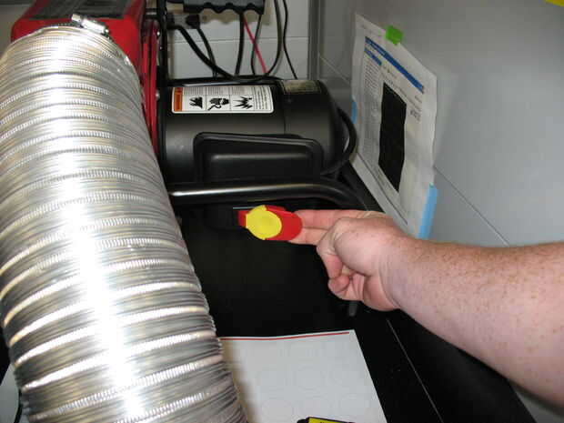 Para encender el aire, sólo gire el mango azul 90 grados hasta que el flujo de aire.