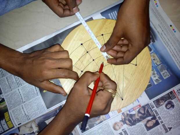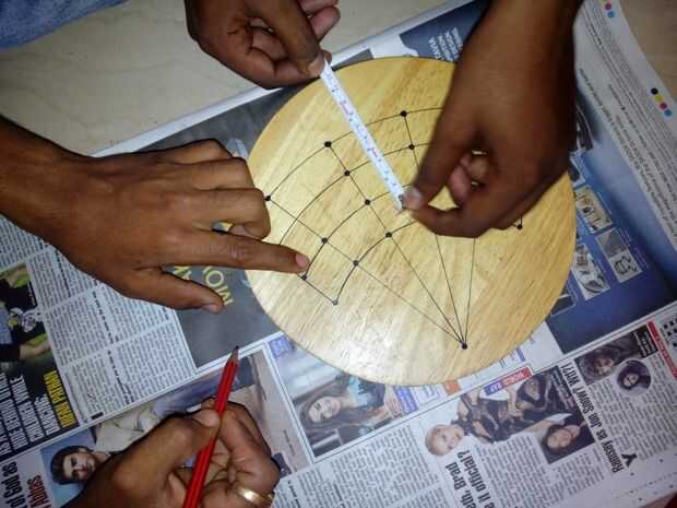 Tomar la pieza de madera circular y marcar un cuadrado de la longitud requerida.