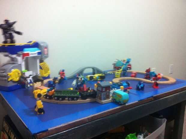 La última necesidad era nuestras 4 años juguetes en un solo lugar y también darle una plataforma para jugar con sus juegos de tren de madera.