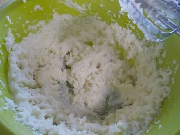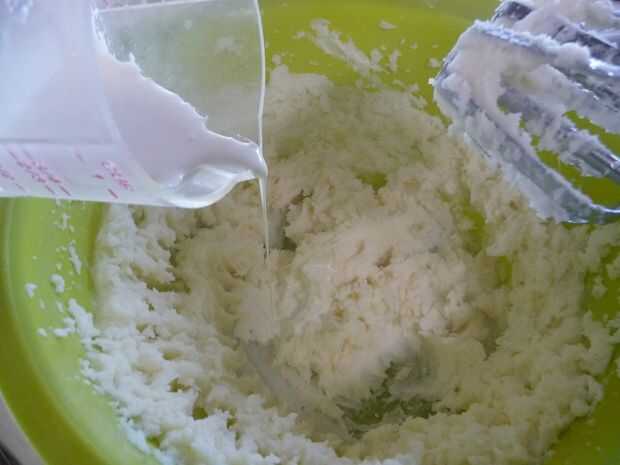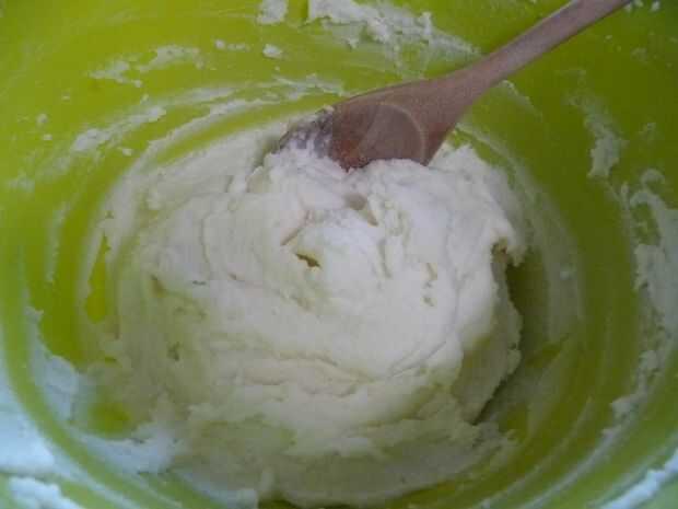 Añadir la crema agria. Usando una batidora eléctrica a velocidad media, mezclar durante unos 30 segundos. Use una cuchara de madera a los lados del desecho.
