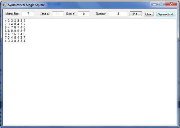 Matriz del mismo tamaño con las mismas operaciones se pueden agregar o restar entre sí. Multplied o dividido con una constante y aún ser simétricos cuadrados mágicos.