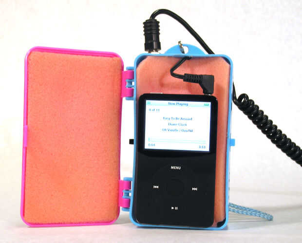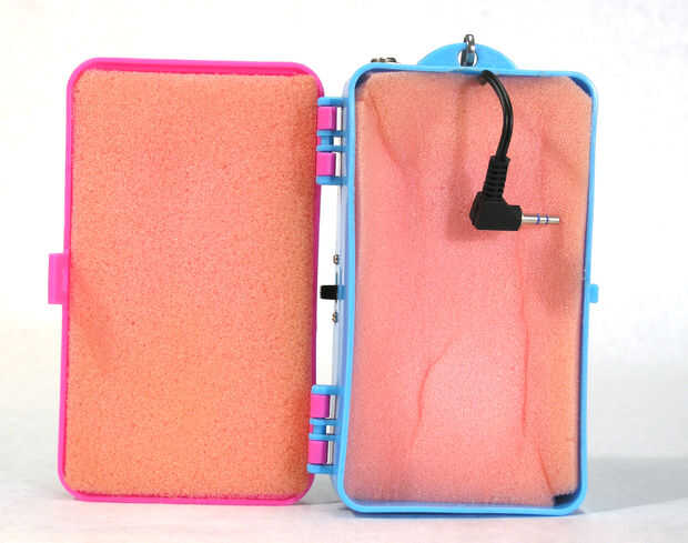 Después de haber instalado todos los componentes en el caso, el paso final es agregar el relleno. Elegí rosa uso espuma de embalaje suave, cubren tanto en el interior y bajo el reproductor de mp3. Una vez hecho esto en su lugar puede dar su nuevo caso una prueba de funcionamiento. Conectar los auriculares y darle una escucha, luego Dale la vuelta al modo de la caja de auge. Encontré que con mi caso, funciona mejor para activar el volumen alto o en la caja de auge. También, porque los altavoces dibujan más de auriculares, me parece que mi vida de la batería es sólo de 4 a 5 horas como una caja del auge en carga completa, pero todavía me parece más conveniente que altavoces amplificados por separado. Como un bono adicional, si se utiliza plástico de su caso, usted puede conseguir el efecto de Barbie poseído espeluznante cuando la luz trasera y cerrar el caso en la oscuridad. Ahora tiene un caso sólido para usted reproductor de mp3 que puede explosión de música en los auriculares retros, hacia fuera construido en altavoces, y le gusta que todos mirando un viejo reproductor de cintas.