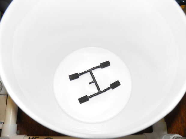 Para proveer a las raíces con el oxígeno, hice una instalación de piedra del aire cuádruple con 3 tes de riego por goteo, algunos tubos y un paquete de cuatro piedras de aire. También podría comprar una piedra de aire más grande y recortar el costo de comprar el kit de riego por goteo de puerto de carga pero estas pequeñas piedras de aire fueron las únicas disponibles en el momento y tenía accesorios sobrantes del kit de riego por goteo barato.