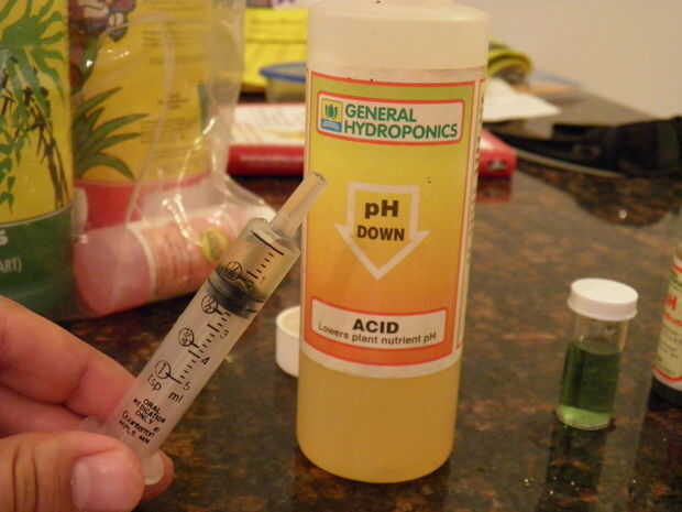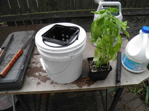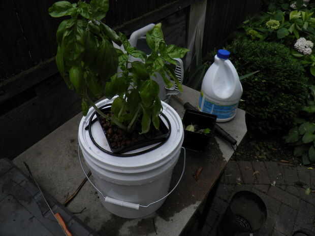Lo primero que quieres hacer con tu nuevo sistema hidropónico es desinfectar todo con una solución de lejía diluida. Yo he tenido sistemas anteriores Haz completamente cubierta de moho porque no desinfecte el depósito de agua y medio de crecimiento primero. Compré una planta de albahaca para usar con mi configuración, pero sin duda puede empezar algo por semilla o por corte. Roció tanta suciedad como yo podría con la manguera y plantar la albahaca. Antes de agregar su planta para el depósito de agua, usted necesitará preparar el agua. En primer lugar, usted necesita medir el pH. Como se puede ver, el agua de mi grifo es alrededor 8.0. Generalmente yo dispare para el rango de pH de 5.0-6.0. Ajusté mis 2 galones de agua con aproximadamente 1 ml de pH GH por solución. Tuve por nutrientes, nutrientes sobrantes de GH Flora Series. En la parte trasera de las botellas, hay tablas para mezclar los nutrientes. Terminé usando 10 ml de cada nutrientes para la relación de "crecimiento general", pero he oído 1/2 las cantidades recomendadas proporcionarán el mismo efecto (sólo quieren comprar más nutrientes). IMPORTANTE: Medir el pH una vez más para asegurarse de que los nutrientes no tirar fuera el pH demasiado! He leído que albahaca necesita alrededor de 10 horas de luz al día para configurar el temporizador de mi lámpara para esa duración. Fije la bomba a la piedra del aire con unos 1-1/2' de la tubería desde el kit de riego por goteo y eso es bastante mucho todo! Tengo fotos de ambas configuraciones de caja de albahaca - uno con 16" las piernas y una piernas 16" + 7" extensiones. Las dos imágenes finales muestran la progresión de crecimiento después de una semana.