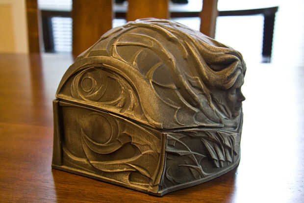 En este Instructable le daré una descripción detallada de cómo creé una joyería de la caja en 3DS Max y Zbrush antes de haberlo impreso por Shapeways. Diseñé la caja de la joyería con la intención de proponer a mi novia con el anillo dentro. La caja fue diseñada en estilo Art Nouveau con florituras que recuerdan el paisaje de elfos de la tierra media. Quería que esto es muy personal, por lo que su rostro fue esculpido en la tapa con la ayuda de un amigo de una serie de imágenes de Cándido perfil.