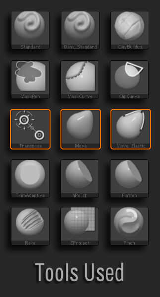 Grupos de enmascaramiento y poli se aplican automáticamente a las superficies internas y externas de recién extraído mallas, dejando los bordes de la herramienta sub a afinar. Normalmente me gusta aplicar una operación de inflado muy leve a los bordes a cada extracción para darles definición. Luego desenmascarar la herramienta sub y use cepillos Elástico de mover y transportar,mover, modificar la forma de cada pieza. Esto me permitió tirar de los bordes en formas refinadas de la esquina o más integrar el diseño en el cuerpo principal de la geometría del cuadro.