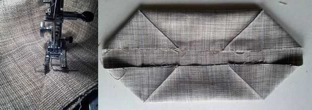 2. parte superior coser cada aleta hacia abajo a lo largo de su borde diagonal.