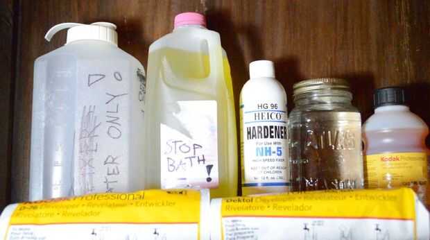 Necesita un buen montón de productos químicos para su cuarto oscuro. Los productos químicos son: programador, claro del Hypo, Fixer y un baño de parada. Todos los productos químicos última siempre deben esperar el desarrollador.