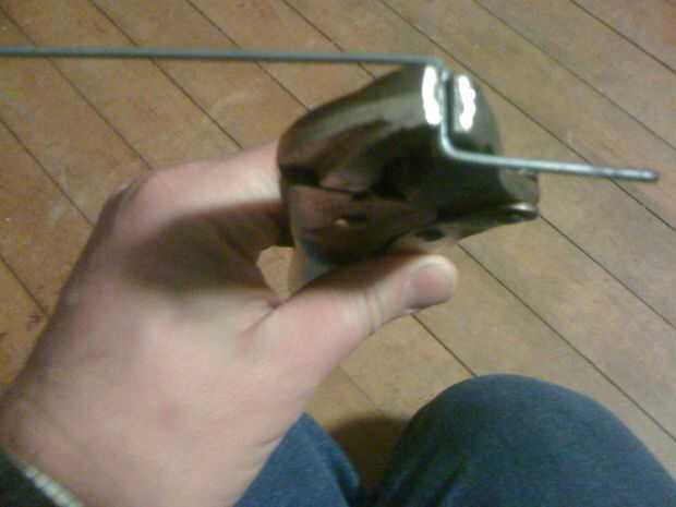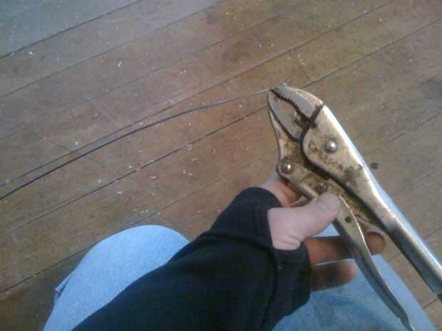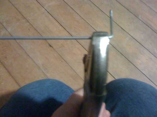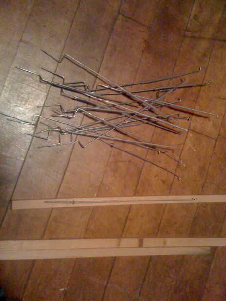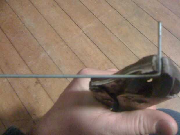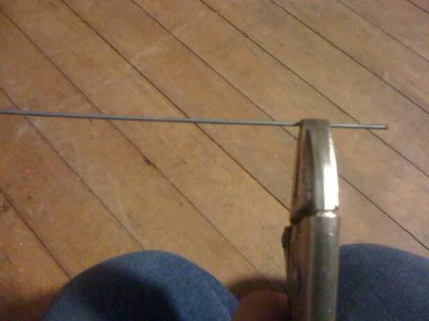 Agarre el habló aproximadamente 1 1/4" del extremo roscado con el cachas de vice y doblar el extremo largo 90 grados agarre el habló otra vez después de la curva que acaba de hace y dobla el rayo 90 grados en sentido contrario. Este es el lado de la S-curva y está doblado en el x, eje y