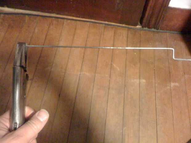 Esto es donde se pone complicado. Agarra el otro extremo de la conversó con el vice apretones y doblar el extremo largo hacia abajo (eje z). Esta curva es de 90 grados ya sea o las otras dos curvas para que el alambre no mentirá plano contra la mesa. Esto formará el lado C de la curva y está doblado en el eje z.