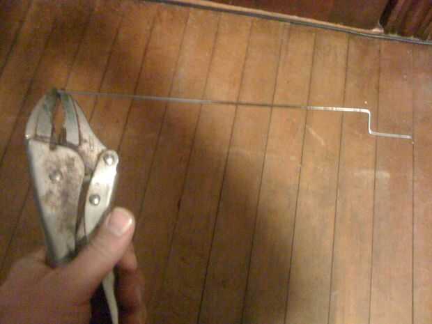 Agarre el cable alrededor de una pulgada de la última curva y curva hacia abajo 90 grados otra vez.