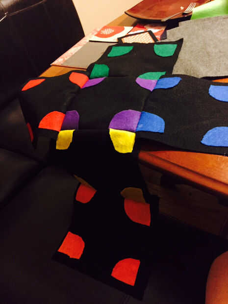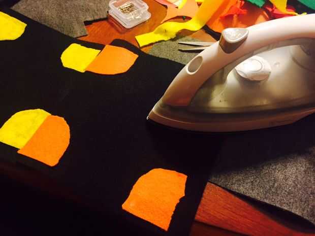 Después recorte los lados del cuerpo principal, puede que desee agregar algunos llamarada. Para la programación del juego en sí, vamos a tener normas que muestran a un cierto color de LED. Para mis propósitos, planchado en tela de color en cada uno de los lados del cubo para asegurarse de que los jugadores sabían lo que era el lado azul, rojo, verde lado. Usted puede tener cualquier tela que quieras con cualquier patrones o color que usted quiera! Usando el pegamento adhesivo, pegamento en la tela adicional a la tela base. Asegúrese de que no es mucho que no quieras que el paño se mojen. Mientras el pegamento está tratando de secar, el paño en un nivel bajo de hierro. Esto Asegúrese de que su paño no es sólo completamente cubierto, pero no habrá ninguna burbuja de aire falta adhesivo.