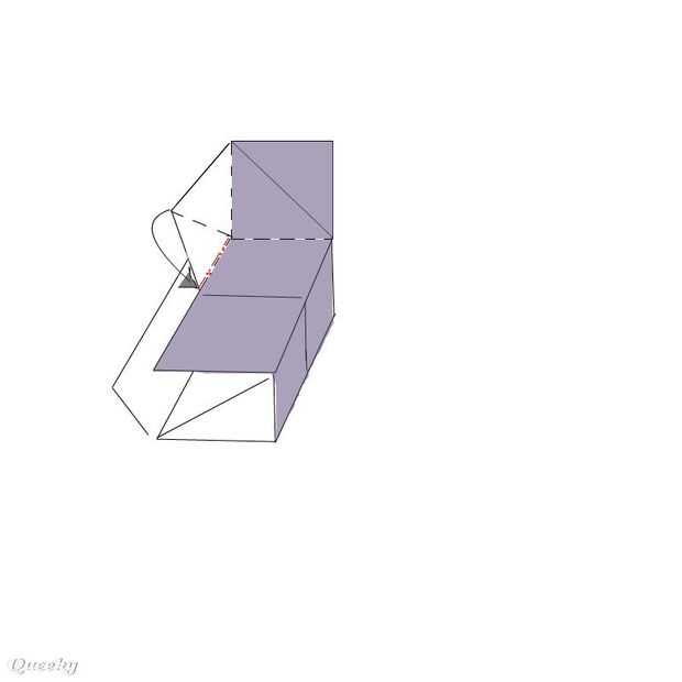 Página 9... Así que esto parece la vuelta del modelo. Aviso no es en la posición más apretada pero... usted necesite squoosh lo un poco. Hacer montaña de doblar a la derecha, la esquina se atore y dibujo la parte de atrás del cubo hacia adelante...