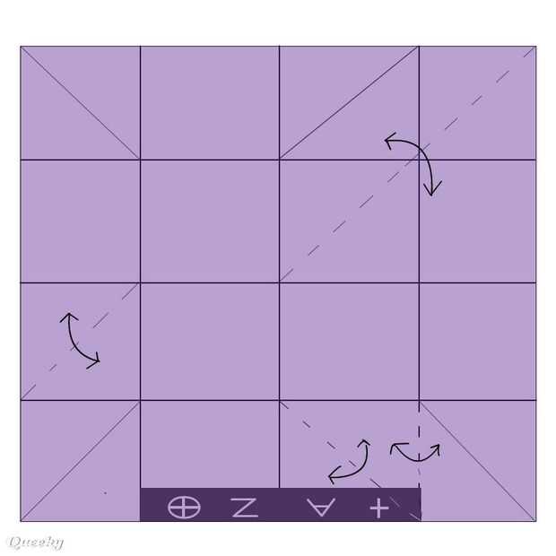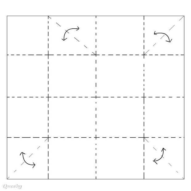 Página 2. Realizar dobleces de Valle en diagonales. Luego gire el papel.