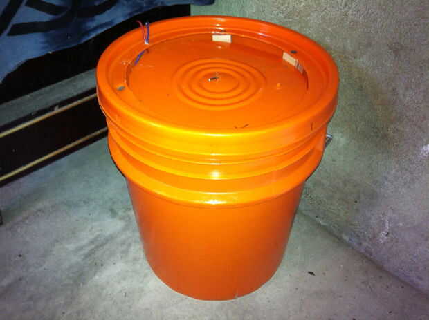 Dentro de la tapa de este cubo es un infrasonido DIY que puede producir ondas de sonido de alta presión hasta unas 18 hz.