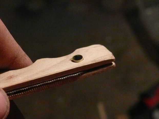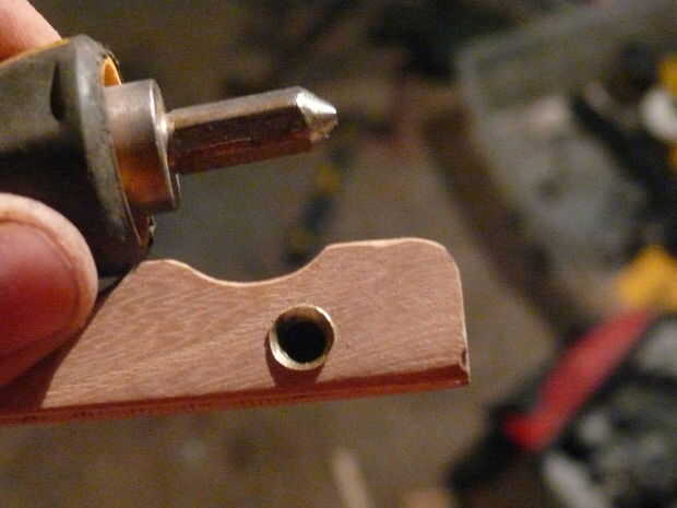 Ahora tienes una herramienta de abocardar... Utiliza un viejo quick-chuck que ya no contiene los bits y al final a un ahusamiento leve de la tierra. Luego puse la Asamblea hacia abajo sobre una superficie dura, asegurándose que el lado opuesto de mi bronce contó con buen apoyo, para que no salte hacia fuera y aprovechado mi herramienta de abocardar la cáscara hasta que los hombros bien y apretada contra el orificio del mango.