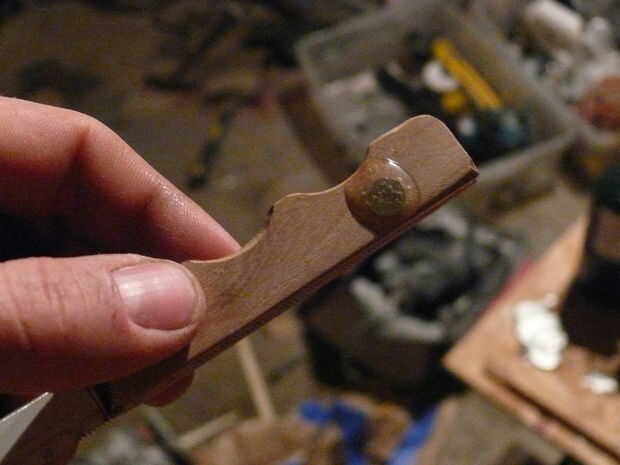 Luego llené la concha con epoxy, asegurándose de que en la cáscara, no sólo en la parte superior y alrededor de él. Asegúrese de utilizar un poco demasiado... a arena apagado más adelante, y es mejor que no lo suficiente. Dejar a un lado y descansar poco.