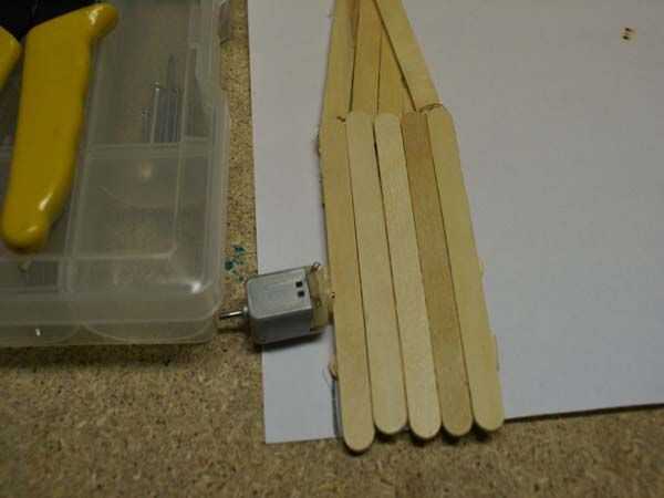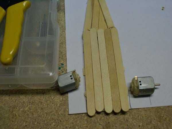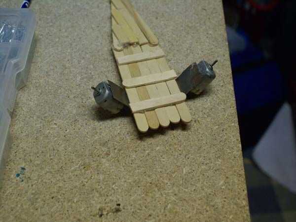 ahora en las 2 aletas pequeñas pegamento 2 motores. (Pegamento caliente)