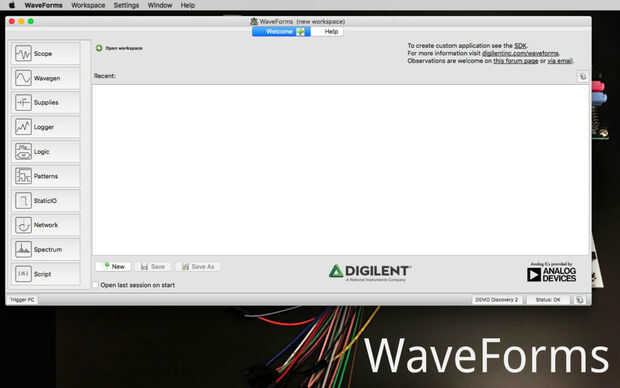 Una opción de software final que es valiosa para la solución de problemas de proyectos es formas de onda, que pueden ayudar a los fabricantes a entender elementos de importante proyecto como voltaje y corriente. Con formas de onda, el usuario puede conectar un osciloscopio (como el análogo descubrimiento 2) para medir tensiones y evitar posibles problemas con los fundamentos de la medición que se hace referencia en el paso 1 de este Instructable. Como otra opción de software libre, formas de onda es ideal para la medición de señales analógicas y digitales utilizadas en creaciones de proyecto. Y si va a crear una innovación biomédica o usable con señales (como este proyecto complejo de la máquina de ECG), es un recurso de gran proyecto.