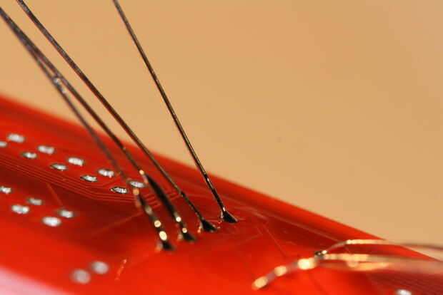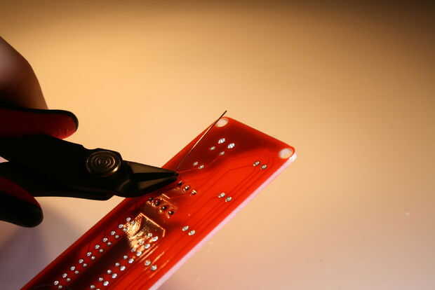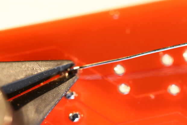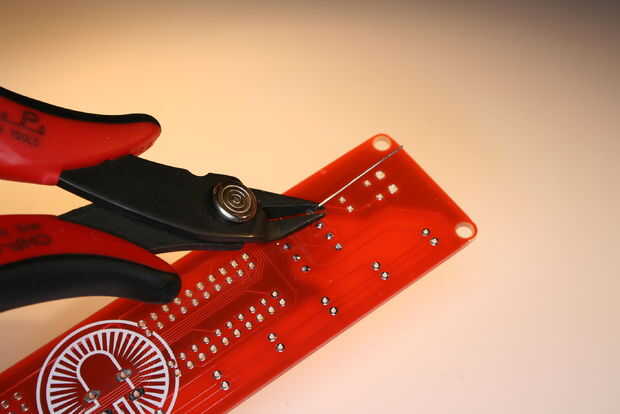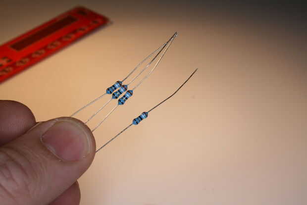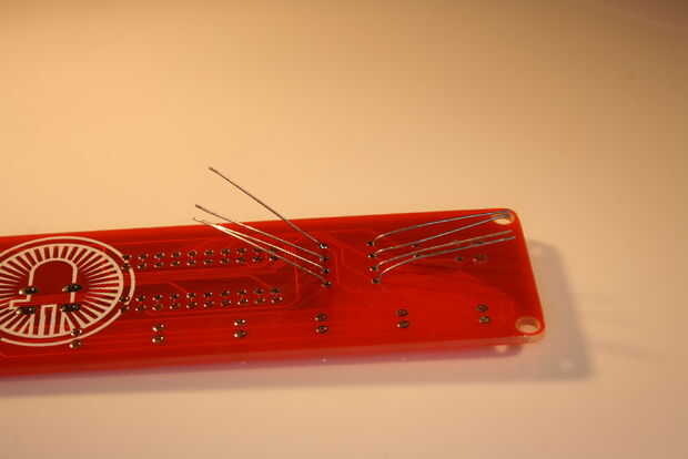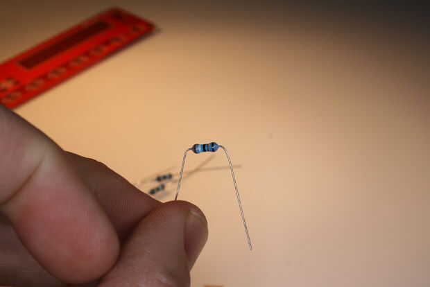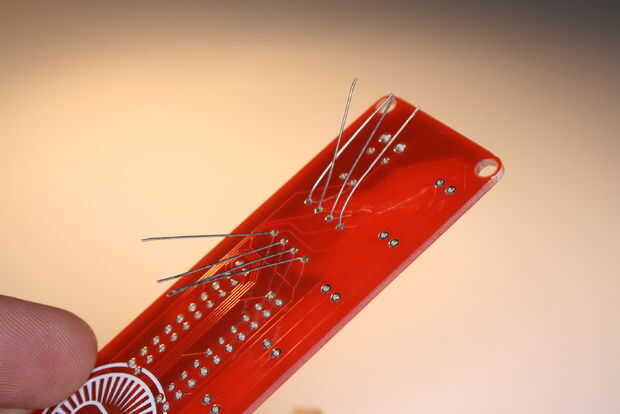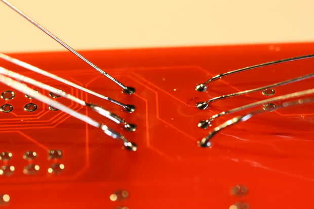 Utilice la punta para calentar la almohadilla (que es el metal en el PCB) y la pata de la resistencia poco a poco y luego empujar el extremo de la soldadura en donde se unen la pierna y cojín y soldador. La soldadura debe fluir en el orificio y alrededor de la pata de la resistencia. Fotos de los están por debajo. Ahora repita para todas las piernas. Quieres obtener suficiente calor en el cojín y la parte para que pueda fundir la soldadura en sus proximidades. Resistencias son difíciles de dañar con el calor así que su técnica aquí. No te preocupes aunque vas a tener más tiempo para practicar antes de llegar a cualquier cosa que usted puede matar fácilmente con un poco de calor.