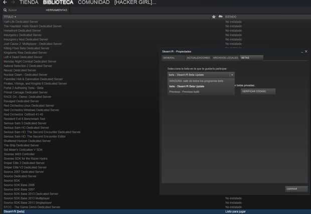 Uno de los juegos con para de TF2 de los funciona es lo cual únicamente es necesario loguearnos en nuestra cuenta de vapor, dirigirnos al apartado de bibliotecas, seleccionar e instalar SteamVR, después trasladarnos al juego click derecho, propiedades, general, establecer opciones de lanzamiento y aquí vamos a ingresar el comando - vr, aceptar. Después nos Xai a la pestaña de betas y seleccionaremos la opción de beta - SteamRV como se muestra en las imágenes.
