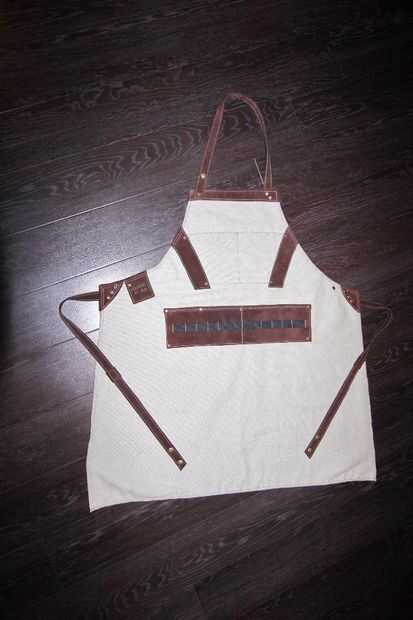 soy un consultor para una empresa de productos de cocina. Me dieron un delantal gratis, pero no soy el tipo de plataforma. Decidí convertir mi delantal en un bolso de mano de gran logo para llevar catálogos extras alrededor (logo ha sido a oscuras).E