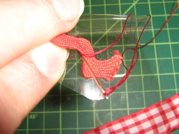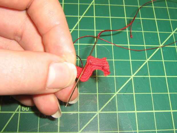 La sirena se cose en el interior de los bordes, los que están expuestos cuando la carpeta está abierta en el libro. Iniciar el punto de cadeneta anudado en la superficie del extremo de una de las piezas de sirena y empujando la aguja * fuera * de la carpeta, esto pondrá la costura en la parte exterior de la carpeta.