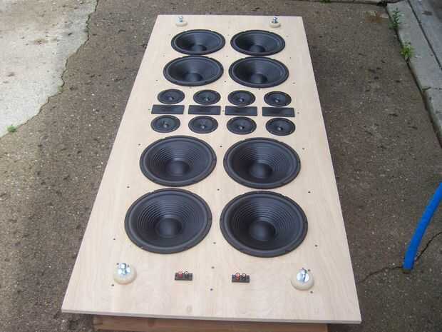Consiste en woofers 12' (8), (8) 5' medios, tweeters de 2' x 5' (4), un cruce simple y (4) soportes de montaje fácil de usar. El tamaño y número de hablantes pueden ser todo lo que quieras, pero esta combinación utiliza el espacio disponible en un portal muy bien.