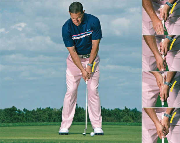 Poner es ligeramente diferente de los otros tiros se encontrará durante sus rondas de golf. Primero agarre el putter poniendo ambas manos sobre la empuñadura de putter. La mano de non-dominate será la parte superior y dominar a voluntad la mano más baja.