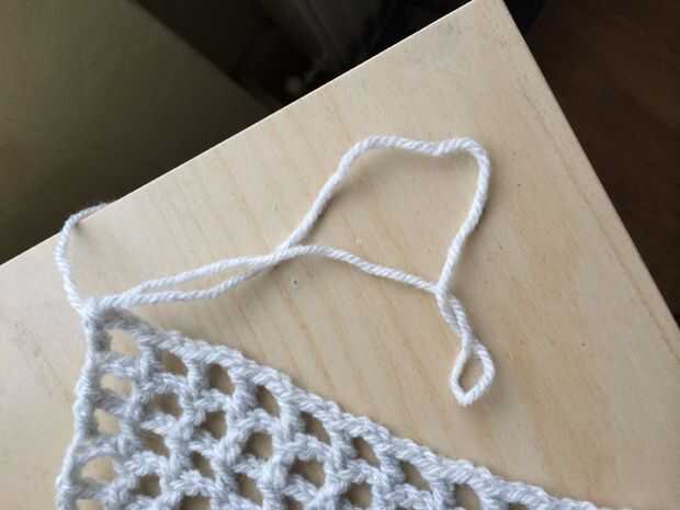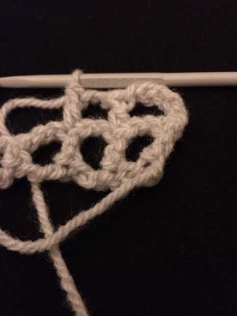 Hagamos un resumen rápido de crochet doble. Envoltura. Poke. Envoltura. Tire. Envoltura. A través de dos. Envoltura. A través de dos. Cadena. Cadena.
