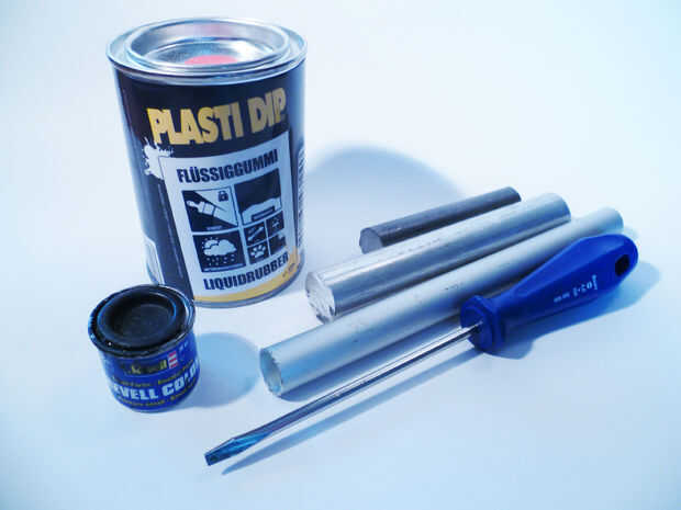 Para este proyecto necesitarás: 1. un destornillador barato 2. un pedazo de la acción de la barra de aluminio 3. una pieza de acero de la barra 4. un pedazo de tubo de aluminio 5. negra pintura (6. liquida para el tornillo de ajuste / / opcional)